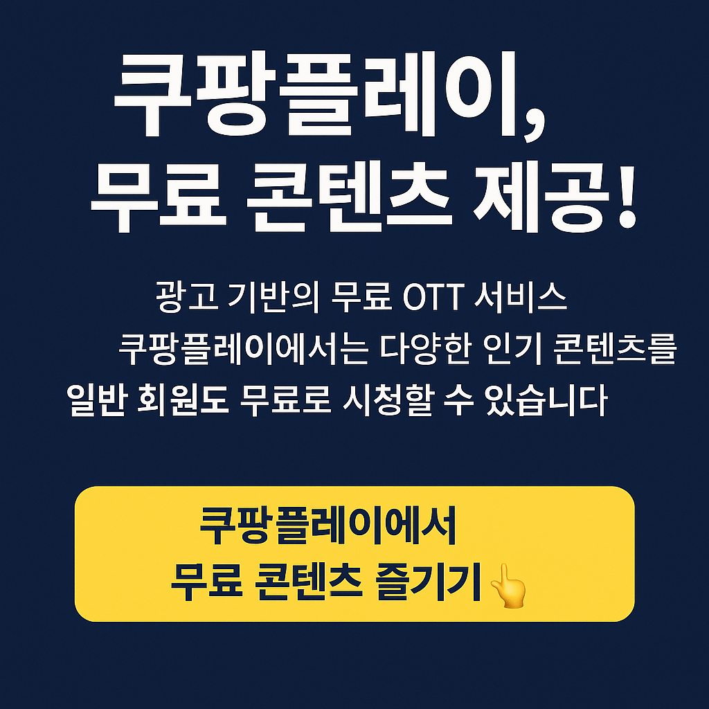 2025년 6월, 국내 OTT 시장에 놀라운 변화가 찾아옵니다. 쿠팡플레이가 와우회원뿐 아니라 일반 회원에게도 완전 무료로 개방되며, 광고 기반 스트리밍의 새 시대를 열고 있습니다. SNL 코리아, 소년시대, 가족계획 같은 오리지널 콘텐츠부터 영화, 드라마, 스포츠까지 누구나 무료로 즐길 수 있는 기회를 지금 바로 확인해보세요!