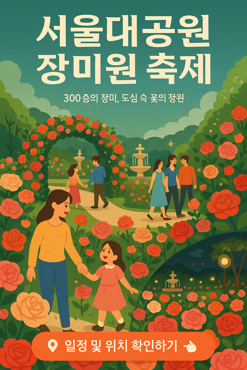 단순한 꽃 구경을 넘어, 자연과 예술, 휴식이 함께하는 시간. 장미꽃길을 걸으며 힐링하고 싶으시다면 아래 버튼을 통해 축제 세부 일정, 입장권 정보, 운영 시간 등을 지금 바로 확인하시기 바랍니다.