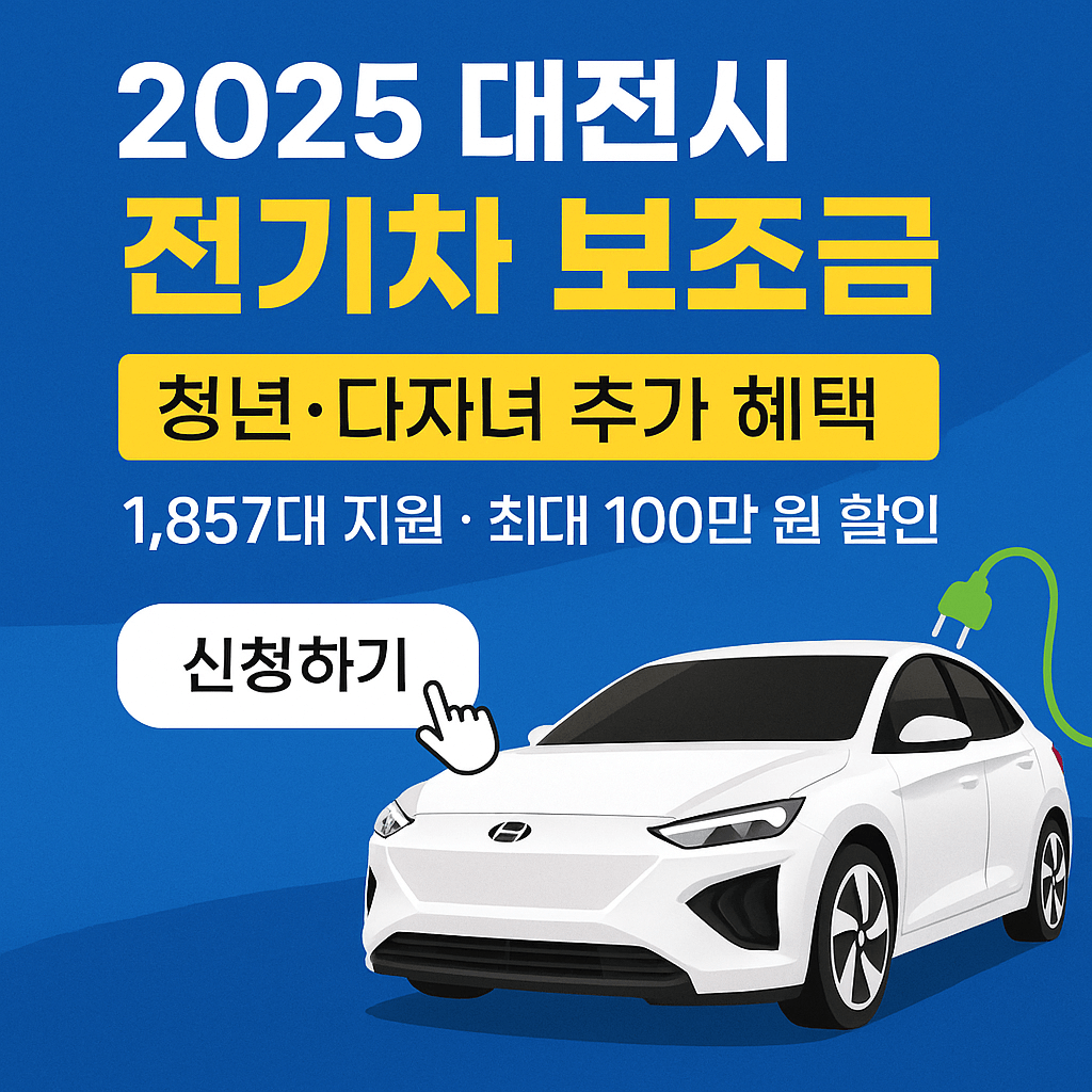 미세먼지와 기름값 부담에서 벗어나 친환경 전기차로 전환하고 싶으신가요? 2025년 대전시 전기차 보조금으로 청년층과 다자녀 가구는 최대 100만 원 추가 혜택까지 받을 수 있습니다. 선착순 1,857대 마감되는 이 기회를 지금 바로 확인해보세요!