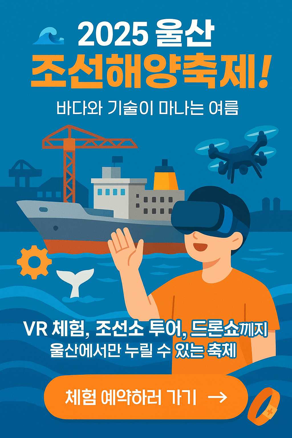 가족, 연인, 아이들과 함께 뜻깊은 여름날을 보내고 싶다면, 2025 울산 조선해양축제가 최고의 선택입니다. 선착순 체험 기회와 경품 혜택까지, 이 특별한 순간을 절대 놓치지 마세요.