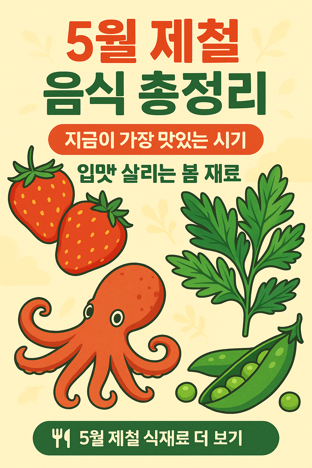 안녕하세요, 티스토리 가족 여러분! 계절이 바뀌면 밥상도 새로워지죠. 특히 5월은 봄과 여름이 만나는 시기로, 신선하고 영양 가득한 제철 재료가 풍성한 때예요. 지금 아니면 놓칠 수 있는 5월의 맛과 건강을 동시에 잡는 음식들, 함께 알아볼까요? 😊