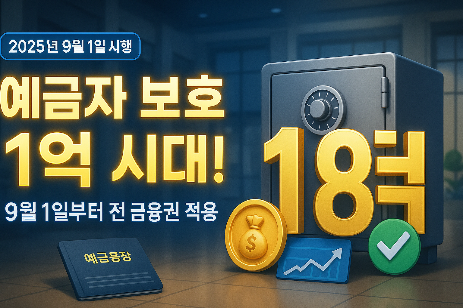 2025년 9월 1일부터 예금자 보호 한도가 기존 5천만 원에서 1억 원으로 상향됩니다.