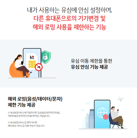 - 주의사항: 유심보호는 해외 로밍 사용 불가